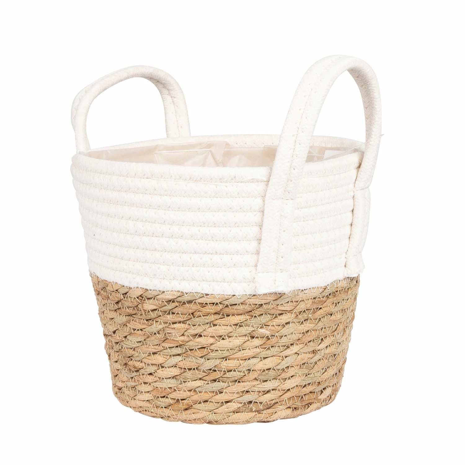 Ob als Pflanzenübertopf oder zur Aufbewahrung – dieser wunderschöne Korb aus Seegrasgeflecht und Juteseil mit Folieneinsatz macht in jeder Situation etwas her.
