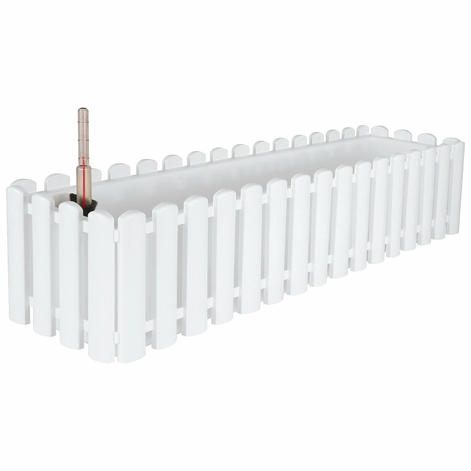 Im Bewässerungsblumenkasten ‚Aqua Palido‘ fühlen sich Ihre Pflanzen wohl. Er ist mit einem speziellen Bewässerungssystem und einem leicht ablesbaren Wasserstandsanzeiger versehen. So ist die Pflanzenpflege einfach. Mit seinem modernen Design in Weiß passt der Blumenkasten zu vielen Gartenmöbeln. Er besteht aus strapazierfähigem Kunststoff und ist 47 x 19,5 x 17 cm groß.