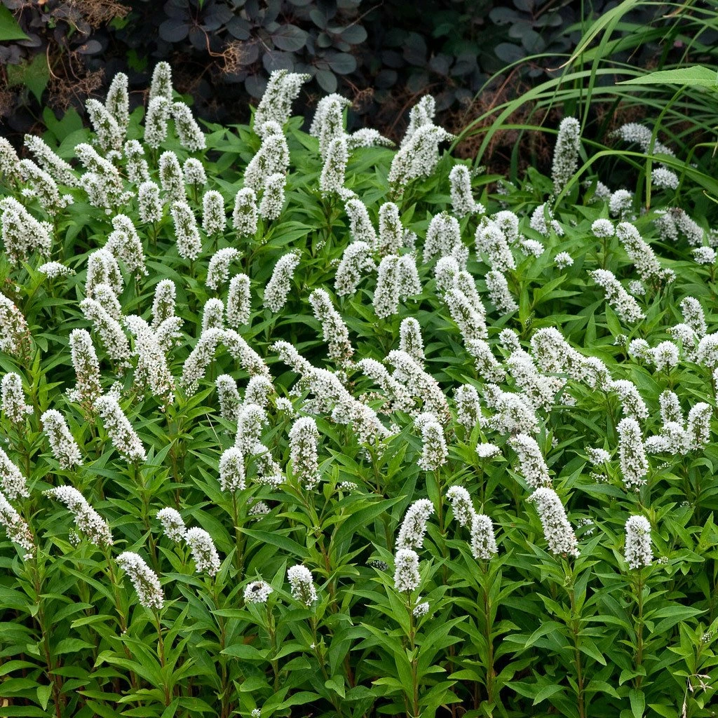 Ihre kleinen, weißen, sternförmigen Blüten bilden elegant geschwungene Blütentrauben und erscheinen zwischen Juli und September.