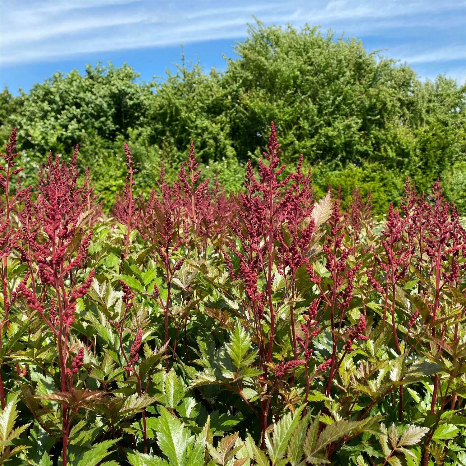Wie flauschige Federn muten die zarten Blütenstände der winterharten Astilben an. Zaubern Sie mit Prachtspieren eine bisher nicht gekannte Leichtigkeit an jeden beliebigen Standort in Ihrem Garten. Besonders flächig gepflanzt, in Gruppen von 3 bis 5 Pflanzen oder mehr, kommt die zauberhafte Wirkung dieser Stauden zur Geltung. Dank der langen Blütezeit im Spätsommer ist für intensive Farbtupfer im Sommergarten gesorgt. Die leuchtend roten Blüten dieser Prachtspiere stehen im harmonischen Kontrast zum sattgrünen Laub. Die Blütenpracht ist vor allem üppig an Standorten mit ausreichend durchlässigem Boden und Nährstoffen.