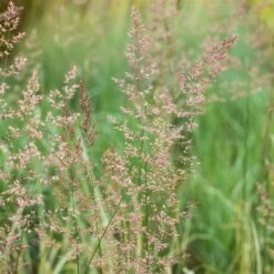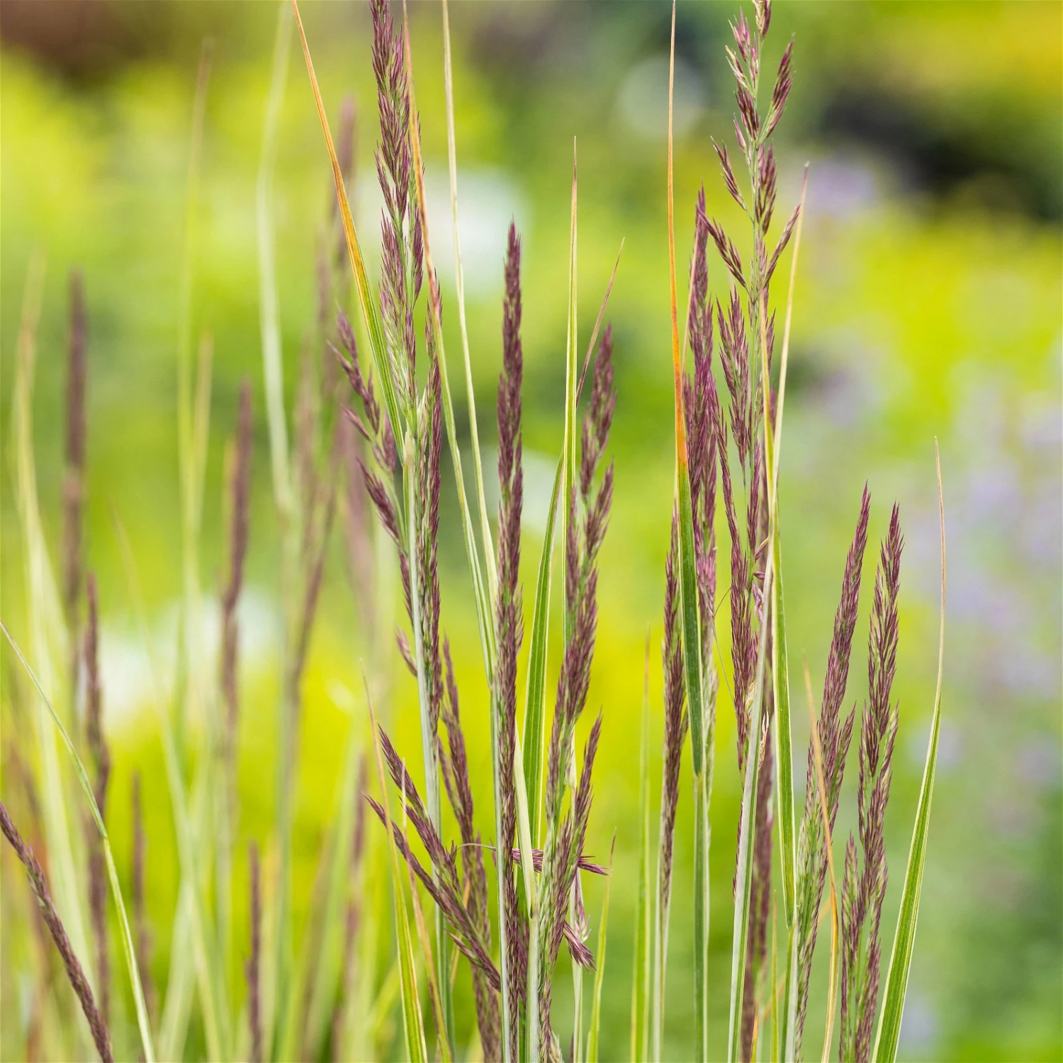 Calamagrostis ‚Overdam‘ hat im Austrieb silbrig-rosa Blütenrispen, die sich weitgefächert öffnen und im Laufe des Sommers dann zu schmalen Ähren werden, die sich im Hochsommer gelbbraun verfärben. So schmücken die dekorativen Blütenrispen den Garten bis weit in den Winter hinein. Schneiden Sie das Gras erst im zeitigen Frühjahr vor dem Neuaustrieb zurück.