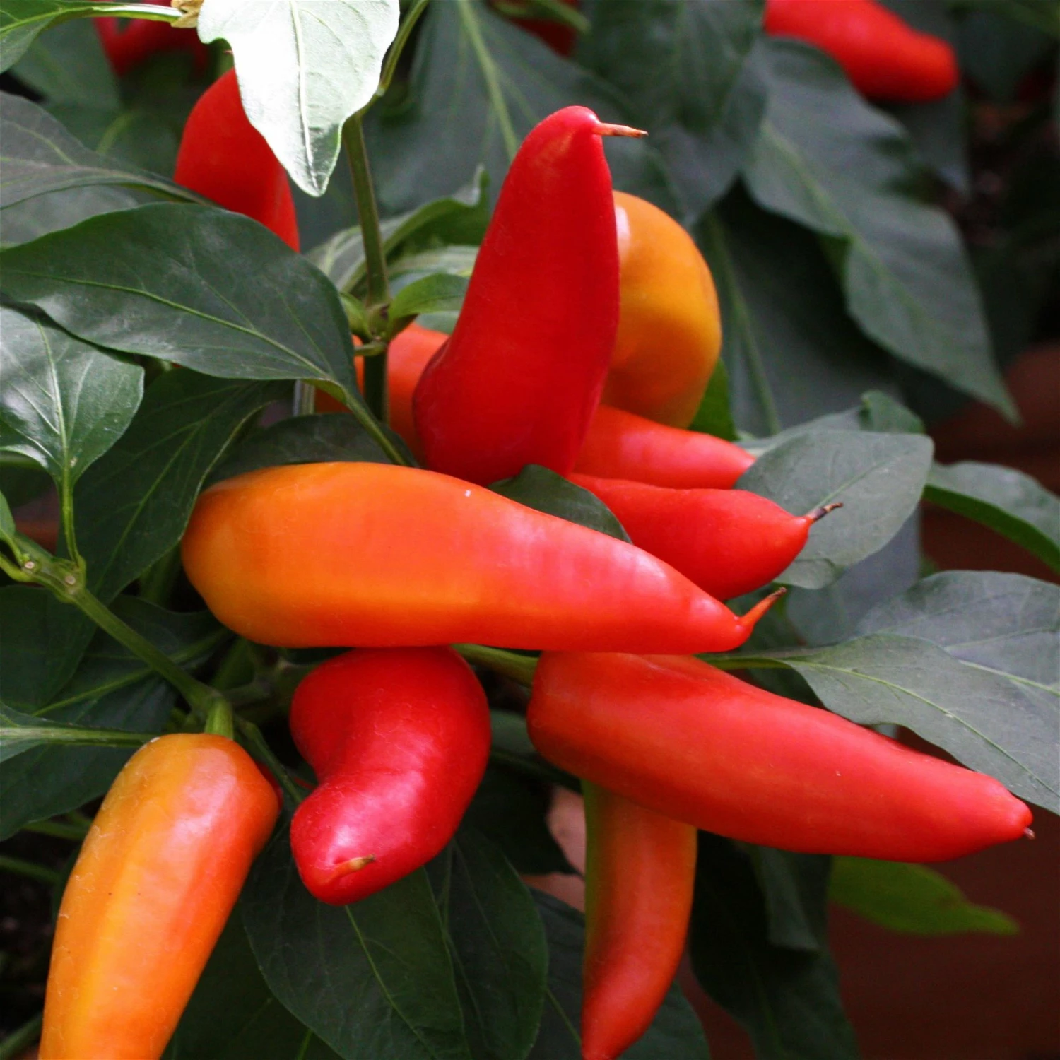 Die 10 – 12 cm langen Früchte der Snack-Chili reifen von hellgelb nach rot. Nur die roten Früchte sind erntereif. Geerntet werden kann ungefähr ab August. Für eine späte Ernte müssen die Pflanzen rechtzeitig aus dem Freiland an einen warmen, geschützten Platz umziehen. Sie eignen sich zum Frischverzehr oder Kochen.