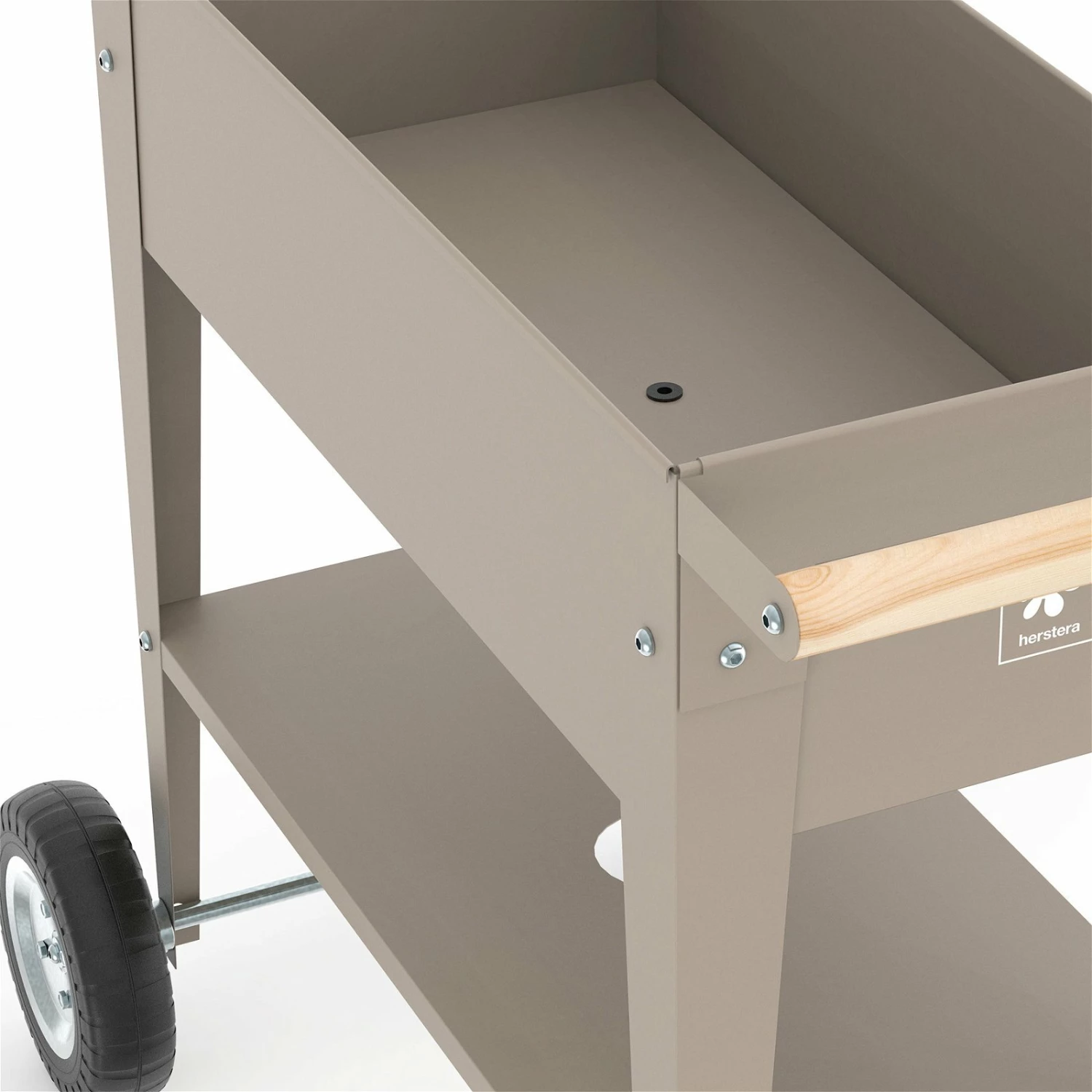 Hochbeet-Trolley Mit Rädern, Taupe, Metall, 75 X 35 X 80 Cm, 47 L