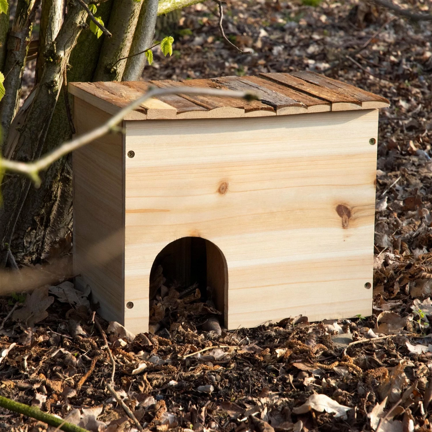 Igel sind Nützlinge und stehen unter Naturschutz. Bieten Sie mit diesem Schlafhaus den Igeln in Ihrem Garten einen sicheren Zufluchtsort an! Gerne ziehen sich die nachtaktiven Tierchen während ihres Winterschlafs in dieses liebevoll und artgerecht gestaltete Igelschlafhaus zurück. Optimal ist ein ruhiger Standort, an dem sich Igel ungestört fühlen.