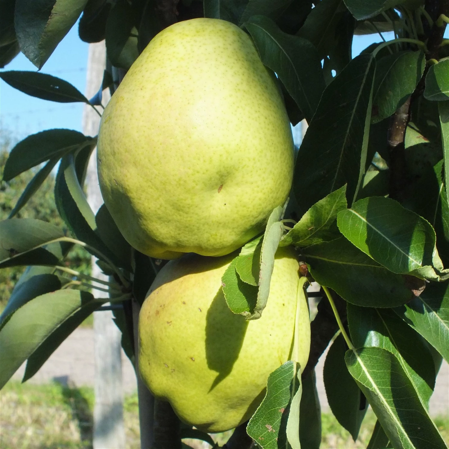 Die Zwergbirne ‚Garden Surprise’® (Pyrus communis) bildet gelb-grüne Früchte mit einem angenehmen Geschmack, die bereits ab September geerntet werden können. Für eine ertragreiche Ernte schaffen durchlässiger, nährstoffreicher Boden und ein sonniger Standort optimale Bedingungen. Auch ihre weiße Blüten, die von April bis Mai erscheinen, bieten einen schönen Anblick.