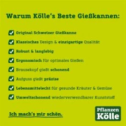 Unsere Marke Kölles Beste präsentiert Ihnen eine funktionelle und ergonomisch geformte Gießkanne in der Farbe grün mit einem Brausekopf. Die Brause sorgt für pflanzenschonendes Gießen in jedem Winkel. Der hochwertige Kunststoff ist nicht nur stabil, UV-resistent und farbecht, sondern auch umweltfreundlich recycelbar.