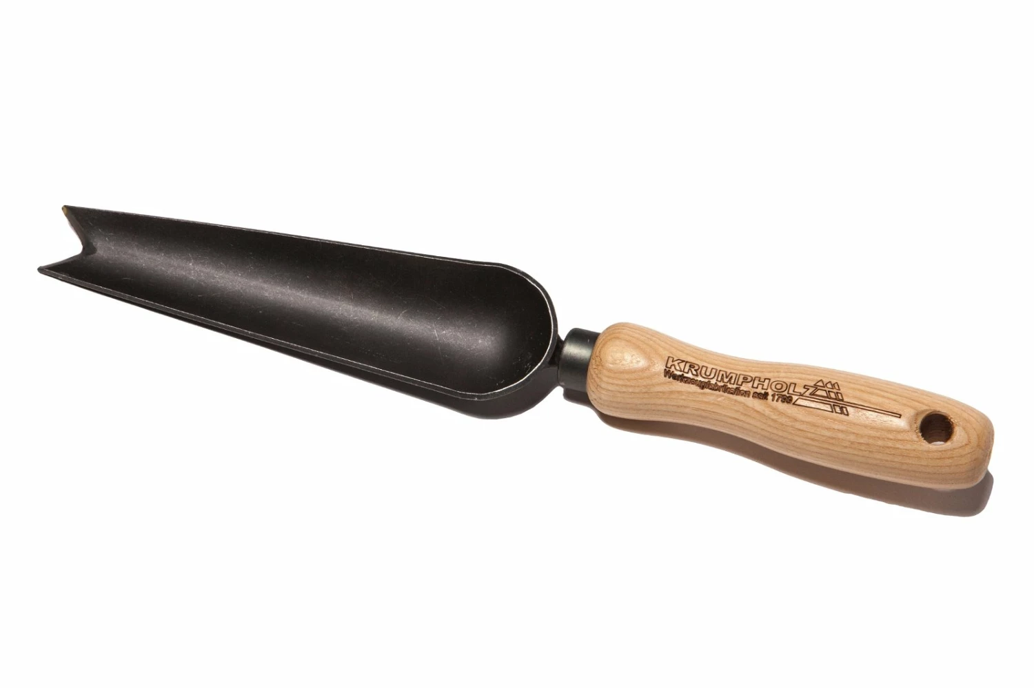Praktisches Qualitätswerkzeug, das sich ebenso für den qualitätsbewussten Hobbygärtner als auch für den professionellen Gartenarbeiter eignet. Die Unkraut- und Jätekelle von Krumpholz wird aus einem Stück hochwertigen Stahls von Hand geschmiedet. Der lackierte Eschenholz-Griff ist äußerst strapazierfähig und sorgt für gute Handhabung. Die Kelle ist scharfkantig und geht leicht in den Boden. Wenn gewünscht oder notwendig, lässt sich die Kelle problemlos nachschärfen.