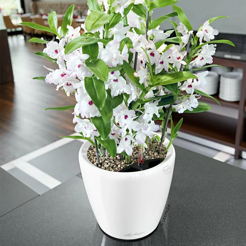 Elegant, zeitlos und dennoch stylisch: Der Classico Premium 43 LS von Lechuza begeistert in hochglänzendem Weiß und mit einem funktionalen „Innenleben“. Bepflanzung wechseln, transportieren, unter fließendem Wasser entstauben oder einfach umdekorieren – dank des funktionalen Pflanzeinsatzes mit versenkbarem, patentierten Griffrahmen sind Ihre Pflanzenschätze jederzeit mobil.