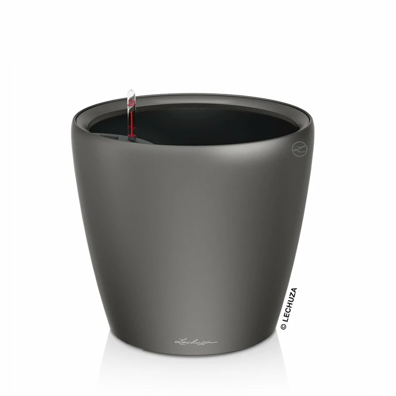 Das praktische All-in-One-Set beinhaltet ein Lechuza Pflanzgefäß Classico Premium 50 Ls in anthrazit-metallic, einen funktionalen Pflanzeinsatz, Granulat für die Drainageschicht sowie einen Wasserstandsanzeiger.