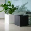 Das Komplettset Cubico Cottage 40 beinhaltet ein mokkafarbenes Pflanzgefäß Cubico Cottage 40, einen Pflanzeinsatz, Granulat für die Drainageschicht sowie einen Wasserstandsanzeiger.