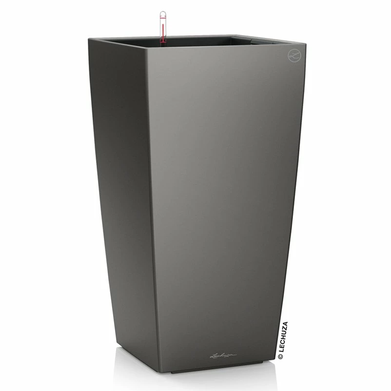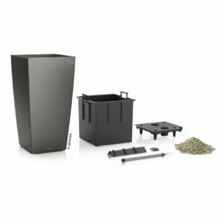Das Komplettset besteht aus einem Lechuza Pflanzgefäß Cubico Premium 40 in anthrazit-metaillic, einem Pflanzeinsatz, Granulat für die Drainageschicht sowie einem Wasserstandsanzeiger.