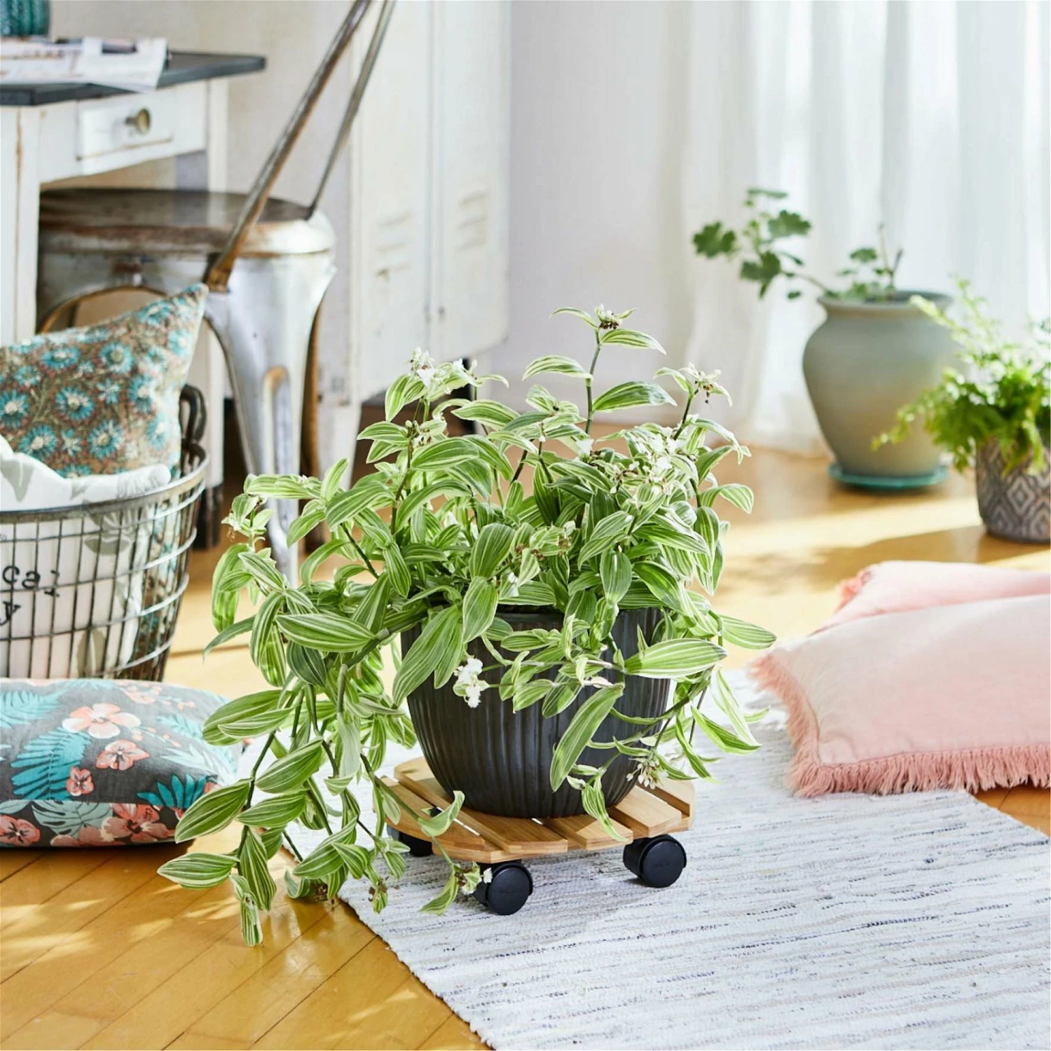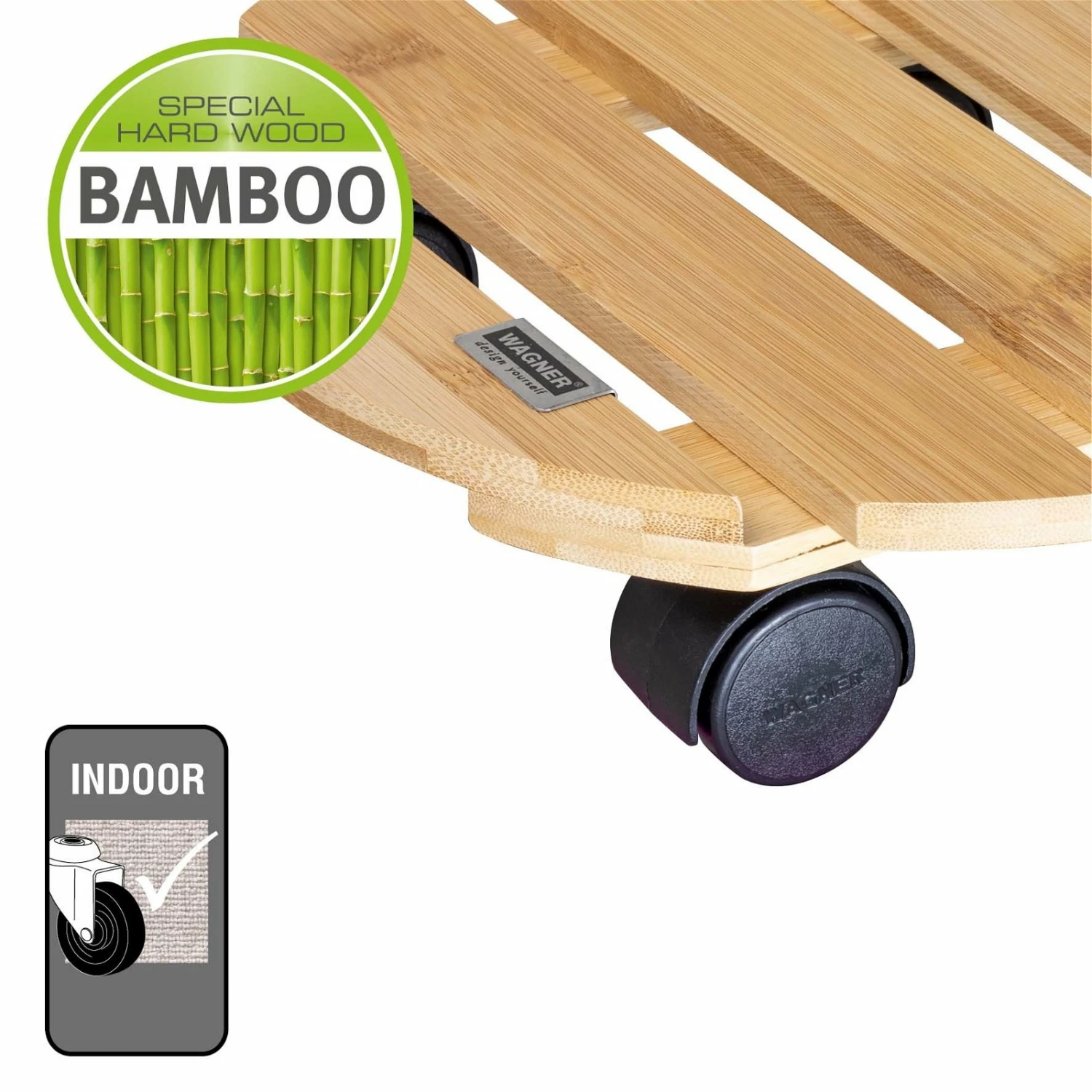 Dieser Pflanzenroller in heller Optik verfügt über eine Tragfläche aus hochwertigem, nachwachsendem Naturmaterial Bambus. Bambus hält hohen Belastungen problemlos stand und ist resistent gegenüber der UV-Strahlung. Mit dem Multi Roller fällt Ihnen die Umgestaltung Ihrer Inndoorbegrünung besonders einfach.