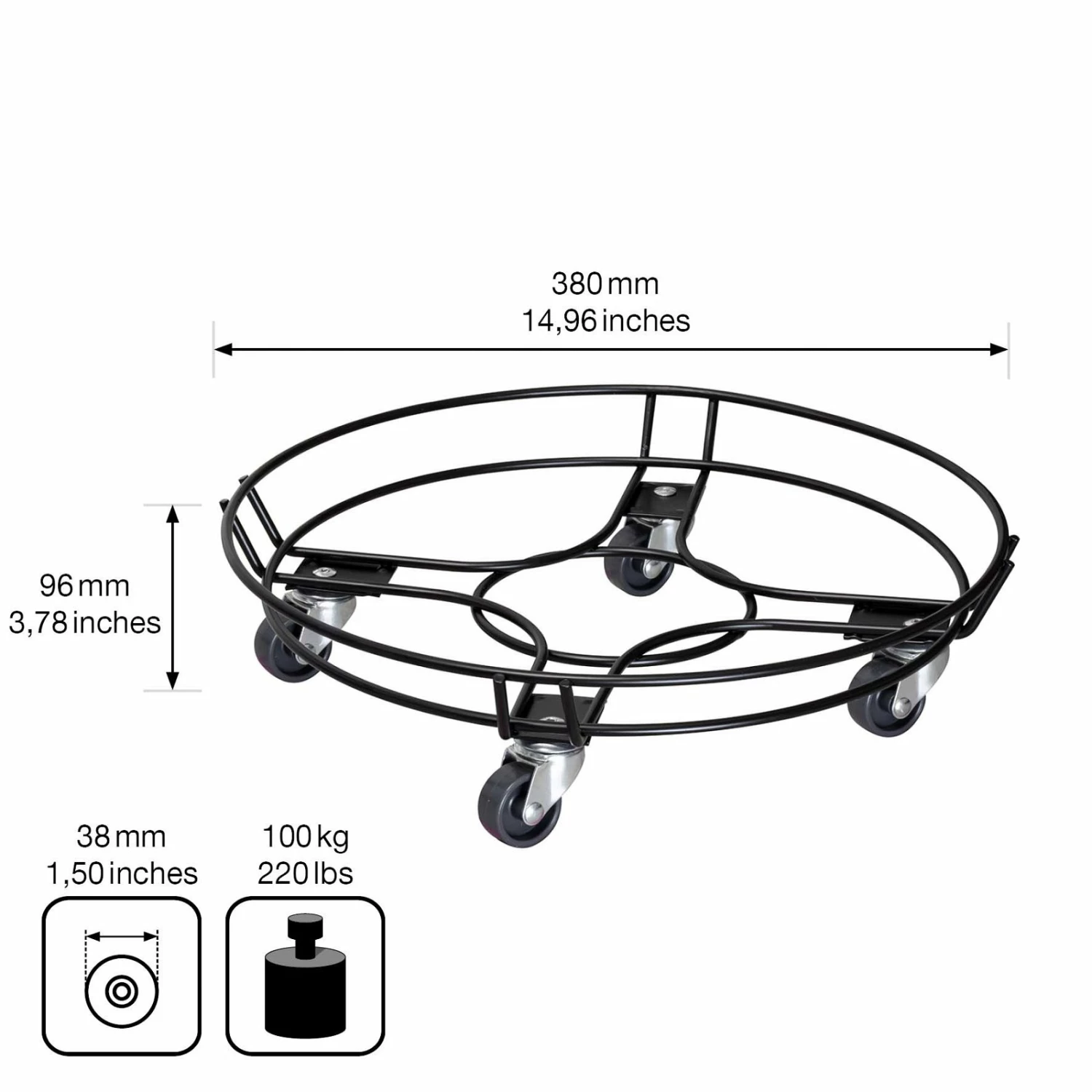 Multi Roller GH 0934, Tragkraft 100 Kg, Schwarz, Ca. 10 X 38 X 38 Cm