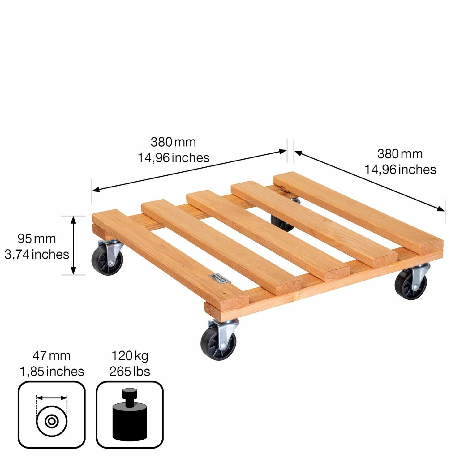 Dieser praktische Pflanzenroller verleiht Ihrer Innen- oder Außenbegrünung ein Plus an Mobilität. Der Multi Roller überzeugt mit einer Tragkraft von bis zu 120 Kilogramm und einer stabilen Oberfläche aus dem FSC®-zertifizierten Kiefernholz. Das Holz ist witterungsbeständig, langlebig und erfordert nahezu keine Pflege.