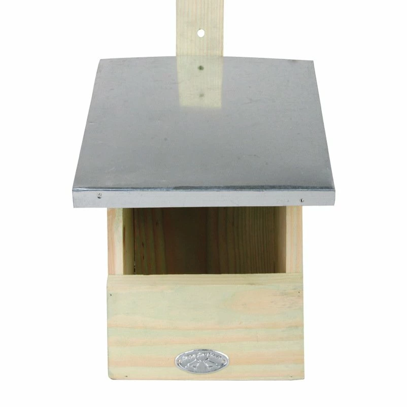 Gefertigt aus FSC®-zertifiziertem Kiefernholz, wird der naturbelassene Nistkasten mit leichtem Grünstich zu einem besonderen Blickfang in Ihrem Gartenparadies. Ein großzügiges Dach, verkleidet mit hochwertigem Zinkblech, schützt die fliegenden Gäste nicht nur im Winter vor Wind und Wetter. Eine große Reinigungsöffnung ermöglicht eine problemlose Reinigung des Nistkastens. Zu empfehlen ist eine jährliche, im Herbst stattfindende Reinigung mit warmem Wasser und einer Bürste.