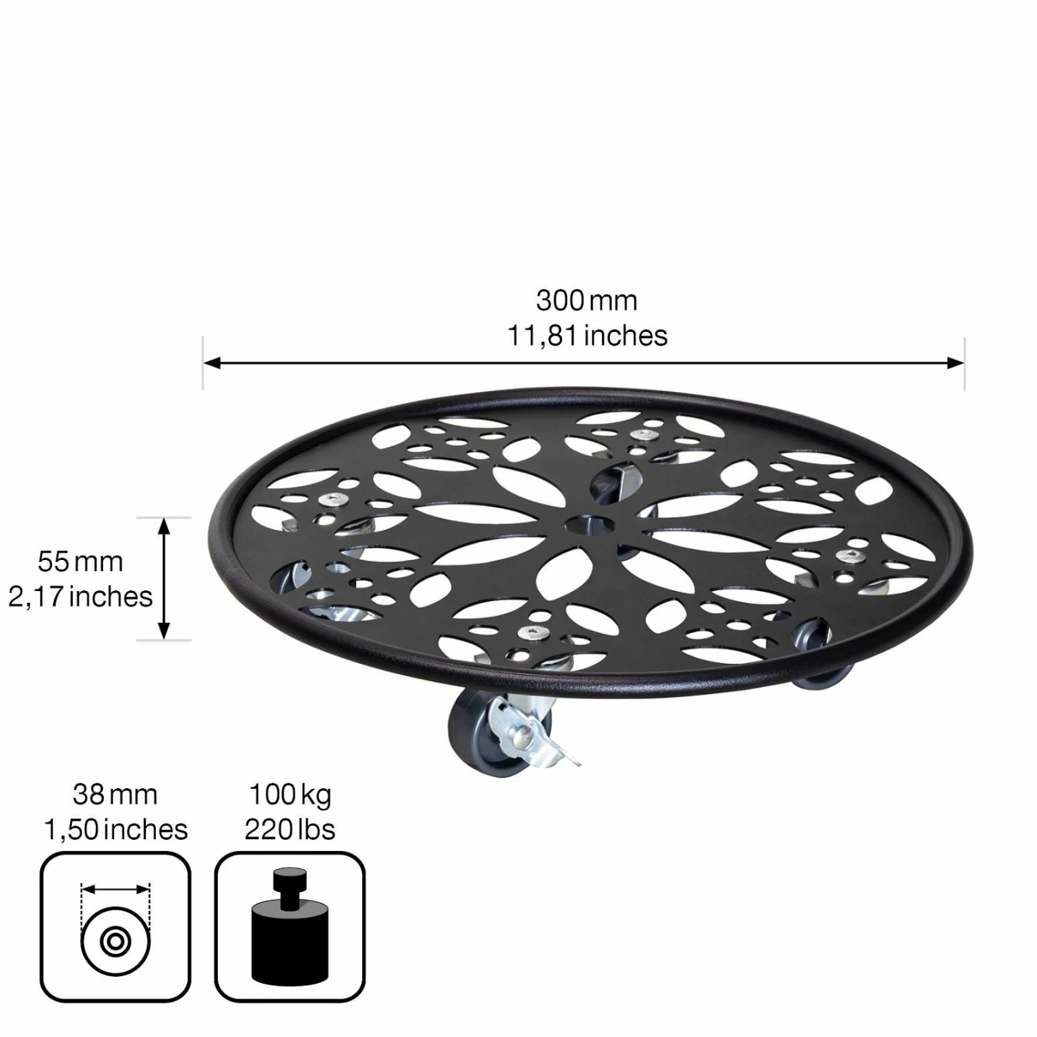 Pflanzenroller GH0936/0937, Tragkraft 100 Kg, Schwarz, Ø 30 Cm