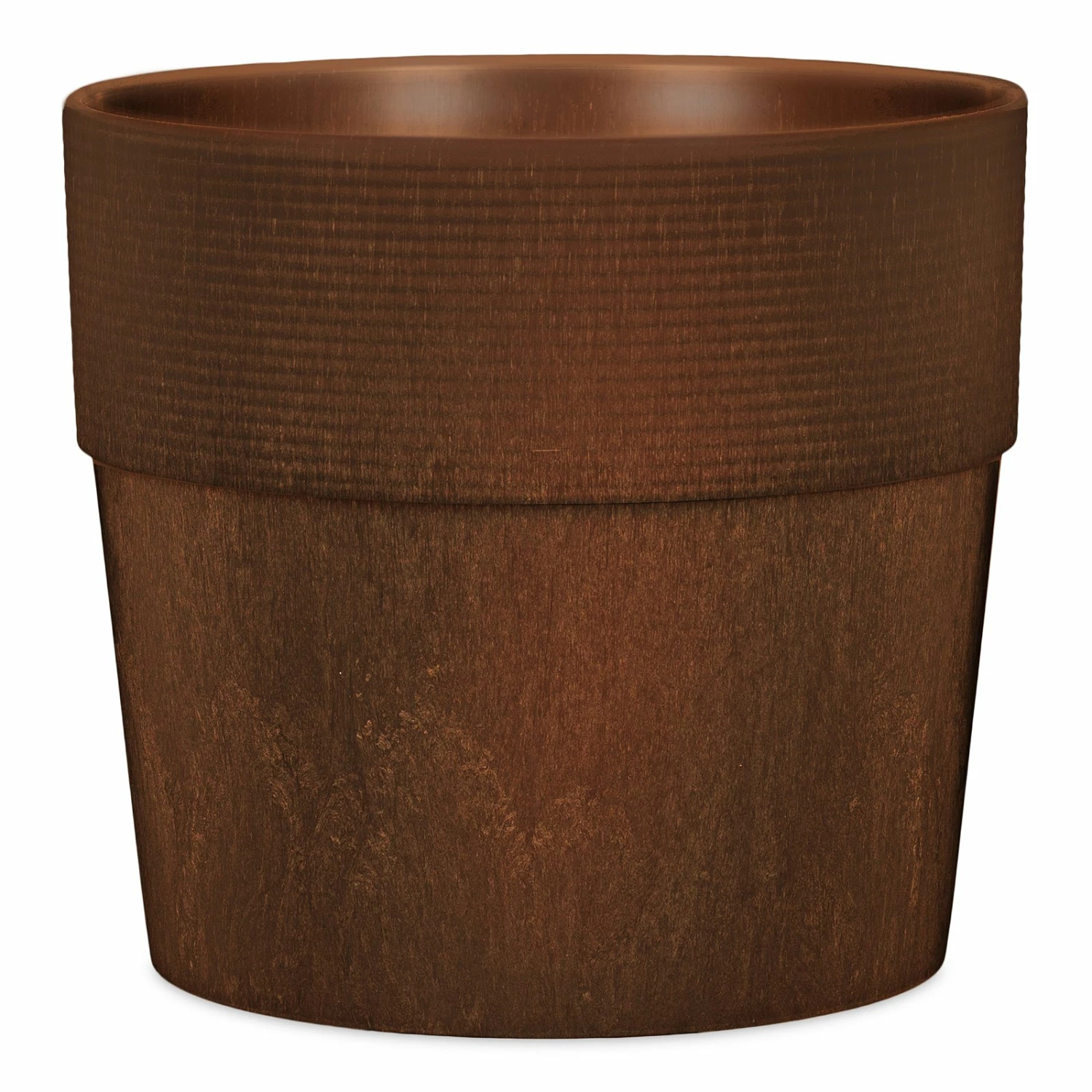 Pflanzgefäß ‚Groove‘ Mit Reservoir, Rund, Walnut, Dunkelbraun, Kunststoff
