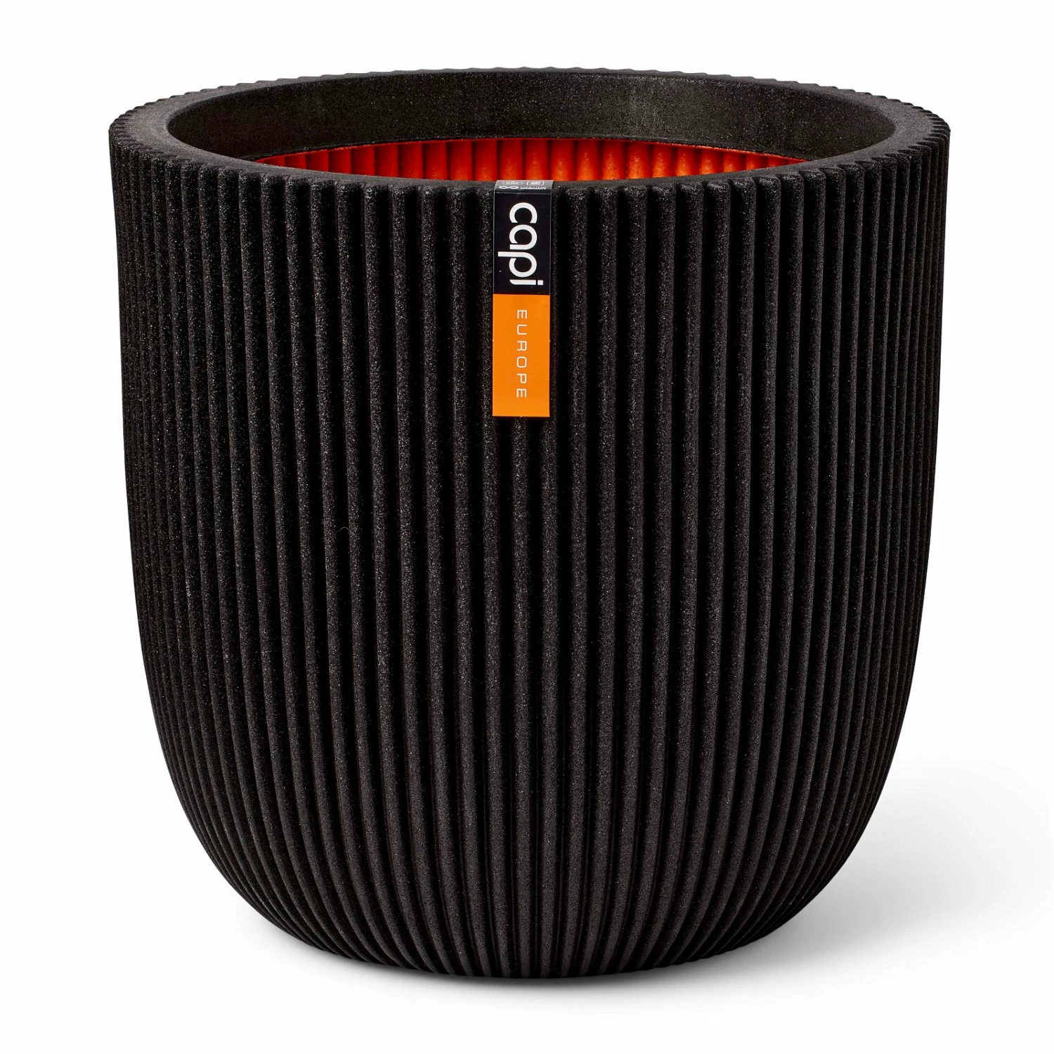 Mit dem schwarzen Pflanzgefäß ‚Groove‘ werten Sie Ihre Außen- oder Innenbegrünung stilvoll auf. Dieser Pflanztopf überzeugt durch eine klare Linienführung und effektvolle Oberflächenstruktur. Die orangefarbene Innenschicht ist mehr als ein dekoratives Element, sondern verleiht dem UV-beständigen und frostfestem Pflanzgefäß von Capi Europe ein Plus an Stabilität.