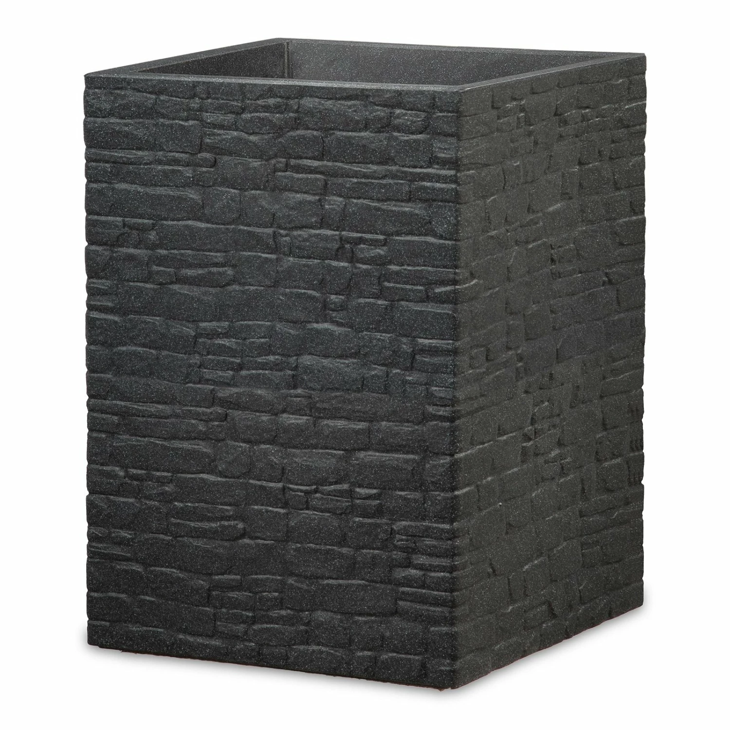 Pflanzgefäß ‚Muretto High‘, Eckig, Stein, Schwarz, Kunststoff
