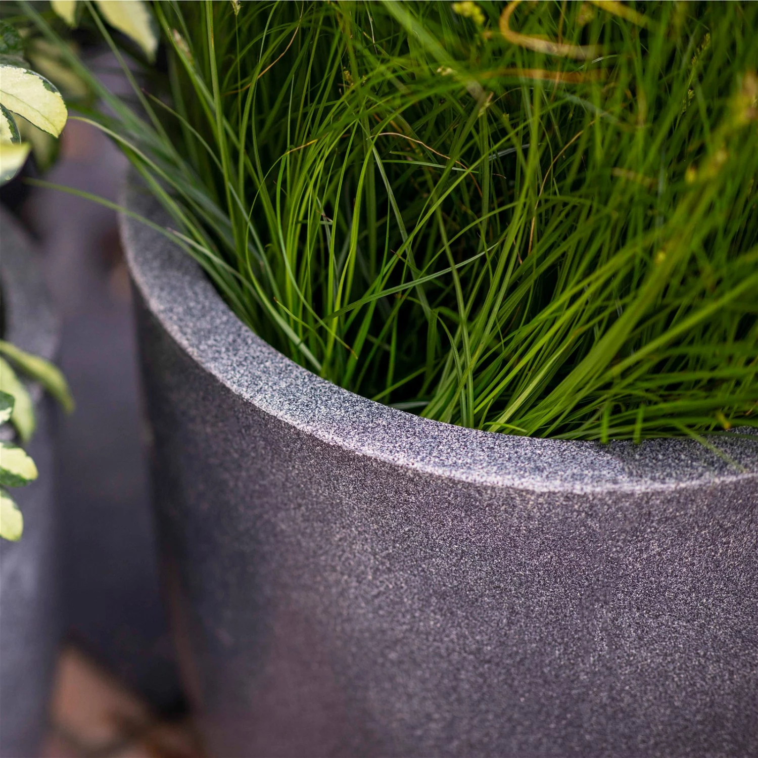 Mit dem dekorativen grauen Pflanzgefäß ‚Smooth‘ leisten Sie einen wertvollen Beitrag zum Umweltschutz, denn dieser Pflanztopf aus dem Hause Capi Europe besteht zu 100 Prozent aus recycelten Materialien. Vor allem Fischernetze, Korken, aber auch alte Kunststoffpflanztöpfe kommen dabei zum Einsatz. Das Pflanzgefäß ‚Smooth‘ überzeugt nicht nur durch eine anspruchsvolle Optik, sondern ist auch bruch- und frostfest sowie UV-beständig.