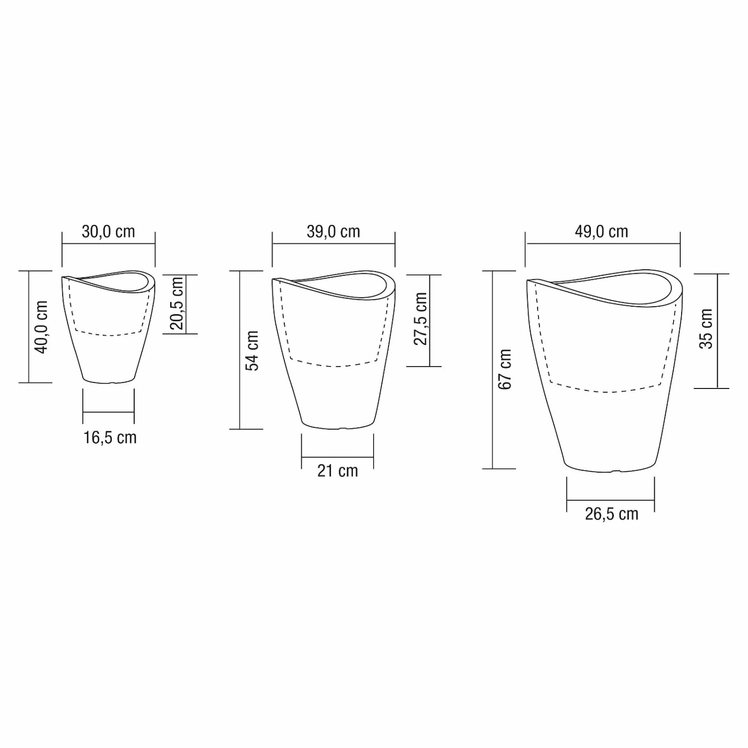 Im Rotationsgußverfahren hergestellt, ermöglicht der patentierte Verschluss für den Wasserablauf eine ganz individuelle Verwendung des dekorativen Pflanzgefäßes im Innen- sowie im Außenbereich.