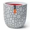 Auch als niedrige Variante macht das Pflanzgefäß „Wave Globe“ in Schwarz eine hervorragende Figur. Das ebenso dekorative wie funktionale Pflanzgefäß wurde mit besonderem Augenmerk auf die Vereinbarkeit von Design und Funktionalität im Rotationsgußverfahren hergestellt. Die doppelwandige Verarbeitung sowie die ansprechende Steinoptik zeichnen das Pflanzgefäß „Wave Globe“ zusätzlich aus.