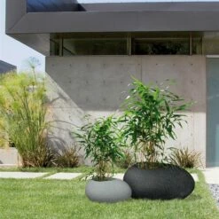 Verbinden Sie für Ihre Anpflanzungen ein modernes Design mit höchster Funktionalität! Das gelingt dem Pflanzstein Flow in der Farbe Stony Grey mühelos. Seine Formsprache ist organisch, sein Design natürlich und an einen übergroßen Kiesel erinnernd. Sein Kunststoffmaterial ist frostsicher, lichtbeständig und macht den Pflanzstein daher sowohl innen als auch außen flexibel einsetzbar.
