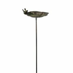 Diese stilvoll designte Vogeltränke ist rund ums Jahr eine lebensspendende Oase für die durstigen gefiederten Freunde. Die Vogeltränke lässt sich dank des praktischen Stabs überall im Garten aufstellen. Auf Wunsch können Sie eine dieser Vogeltränken in edler Bronzeoptik auch als Futterstelle einsetzen. Denken Sie daran, das Gartenaccessoire immer wieder mit einem Antirostmittel zu pflegen und zu reinigen.